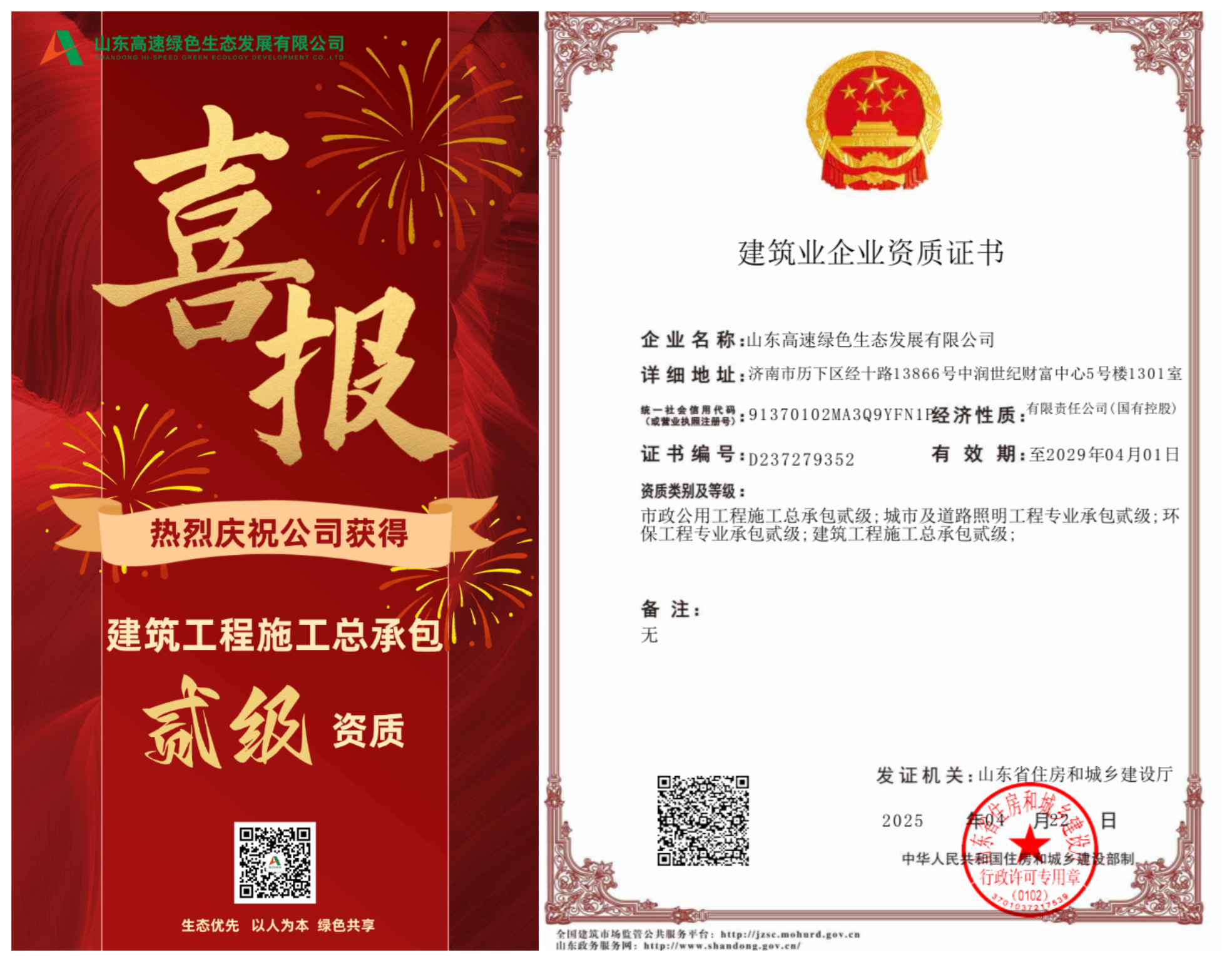 - 喜報(bào)—山東高速綠色生態(tài)發(fā)展有限公司取得建筑工程施工總承包貳... 2025-04-28
